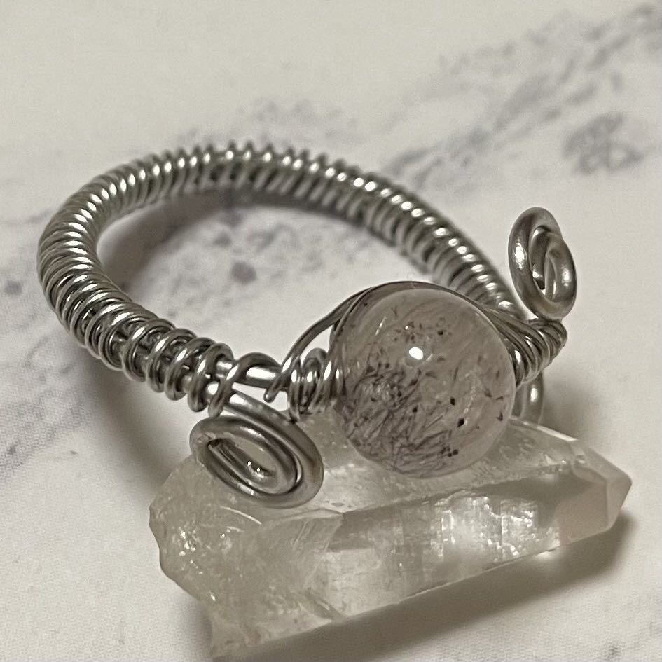 - YR115. 天然石ワイヤーリング スーパーセブン 指輪 天然石リング ハンドメイド 水晶 フリーサイズ オープンリング ニッケルフリー
