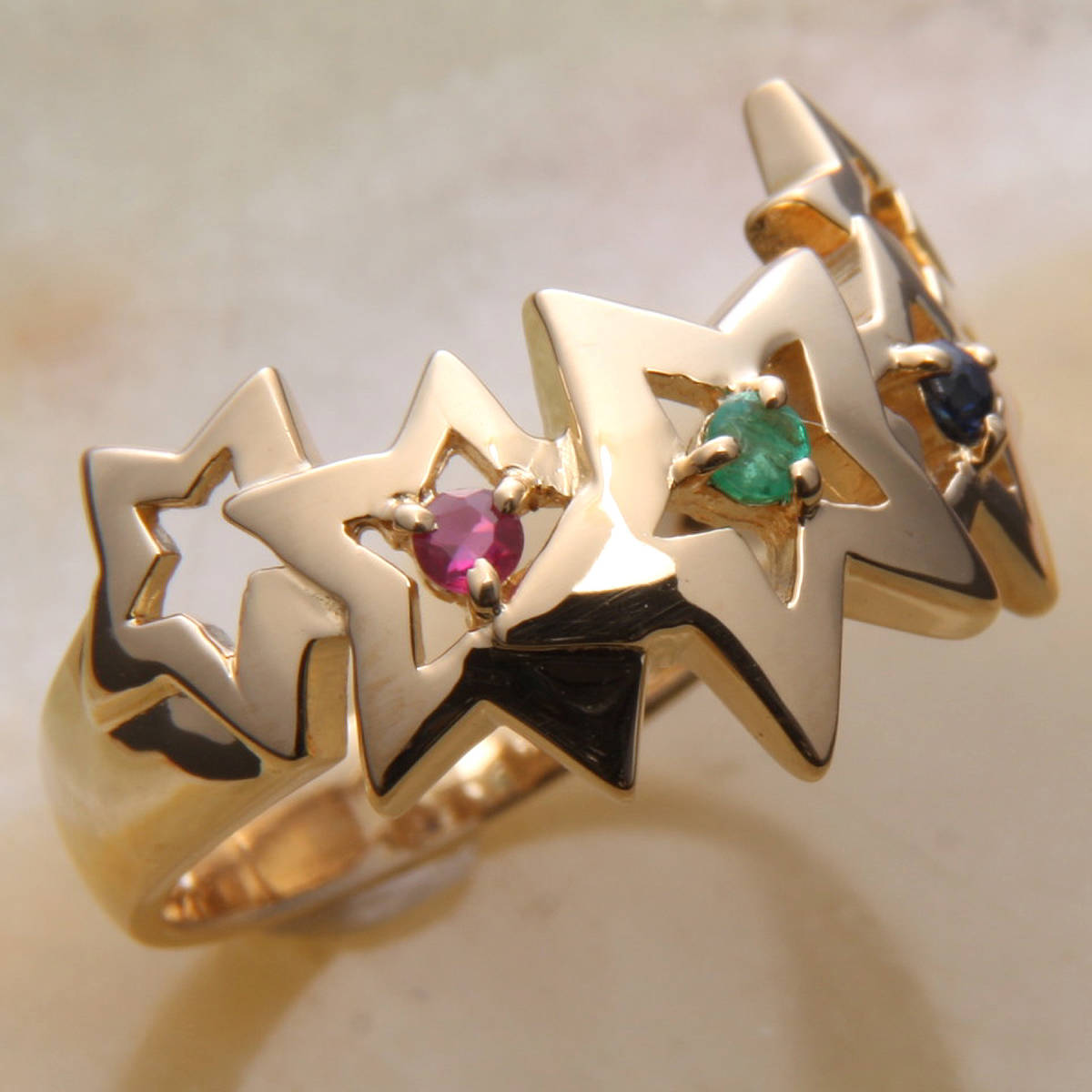 - ke9605◆磨き済 K18リング ルビー/サファイア/エメラルド 星形 11号