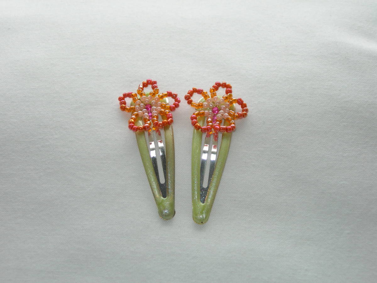 - ビーズヘアピン オレンジ系 ハンドメイド 未使用新品