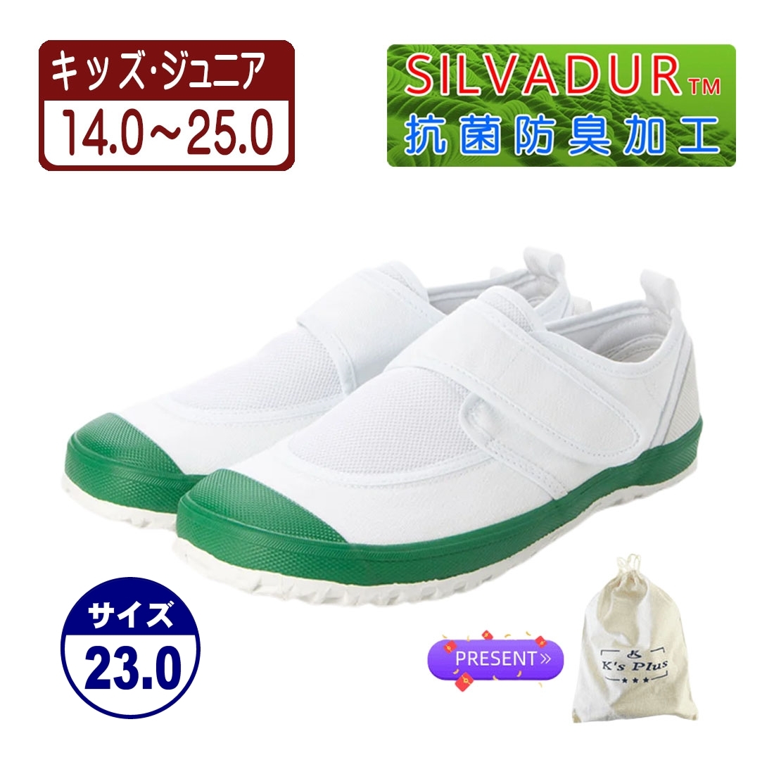 - ★新品★【23999-grn-bagset-230】上履き 上靴 体育館シューズ スクールシューズ 室内運動靴 通園・通学用 通気性&抗菌防臭加工