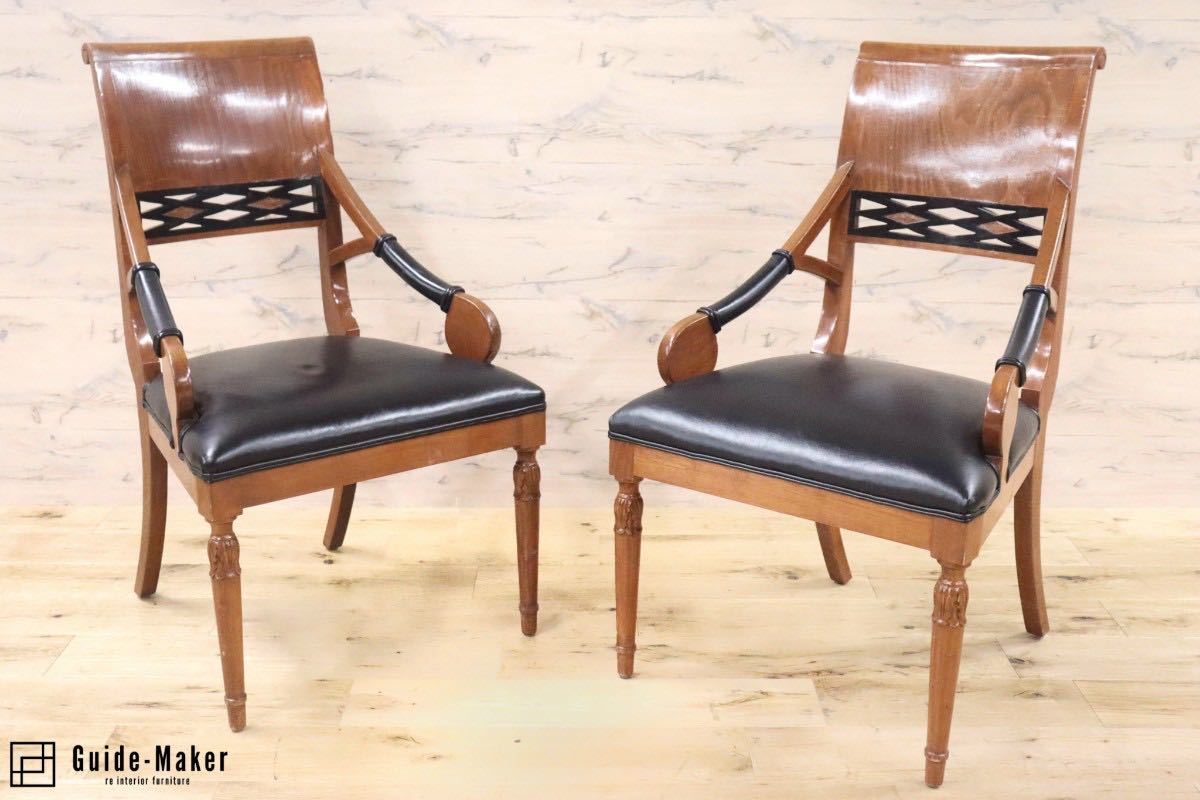 - GMGN142F○イタリア製 クラシック モダン ダイニングチェア 椅子 2脚セット セミアームチェア 本革 レザー 西洋 アール・ヌーヴォー