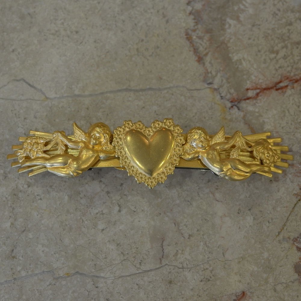 - 【ジュエリー作家Jan Michaels作 天使&ハートのバレッタ】ヴィンテージヘアアクセサリーアメリカハンドメイドフランス製真鍮san francisco