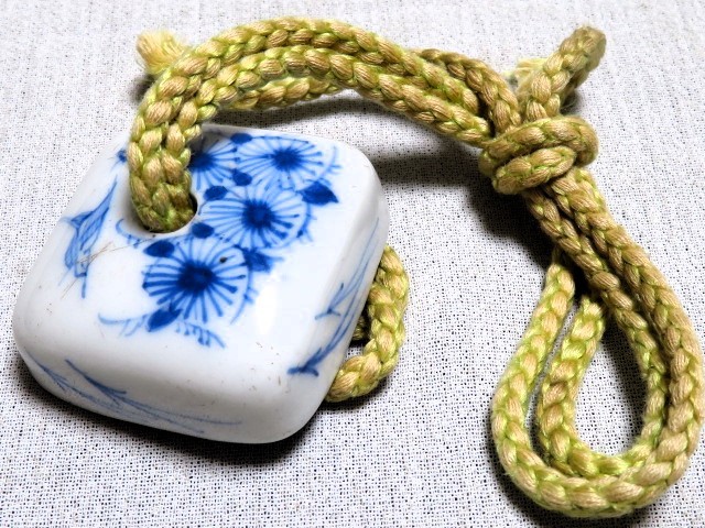- 陶器製根付 染付 陶磁器 古陶磁 提げ物 時代