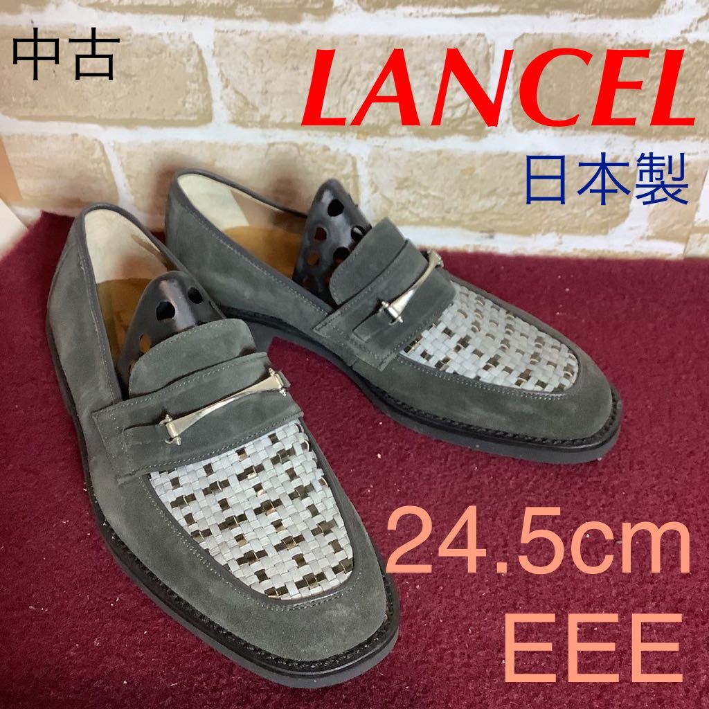 > 【売り切り!送料無料!】A-324 LANCEL!タッセルローファー!グレー!24.5cm EEE!レザーシューズ!スエード!ビジネスシューズ!おしゃれ!中古!