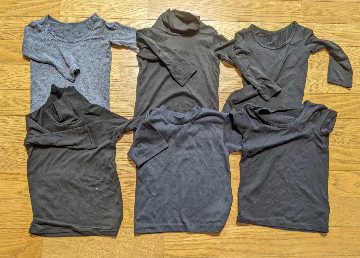 - 【中古・6着セット】サイズ80 長袖 ユニクロ HEATTECH ヒートテック 下着 インナー 黒 グレー タートル