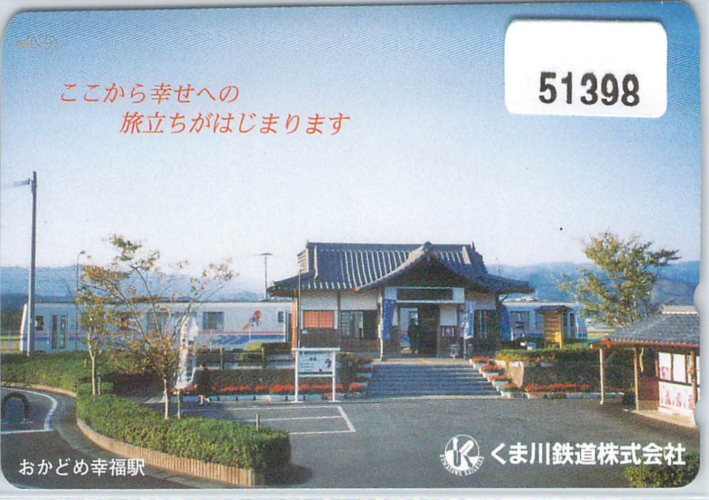 - 51398★おかどめ幸福駅 くま川鉄道株式会社 テレカ★