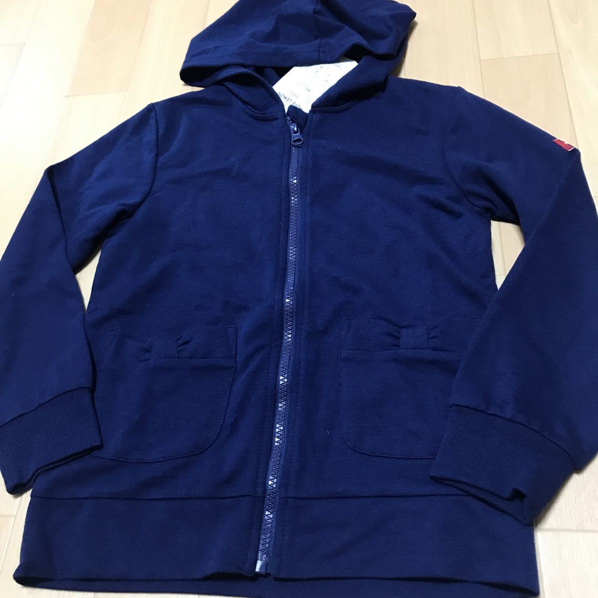 > 新品 未使用品 パーカー 上着 長袖 130サイズ ー フード 紺色 か