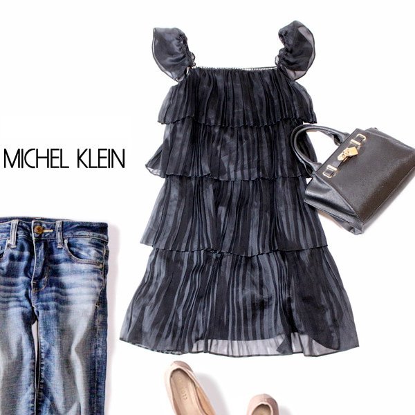 > ☆☆ 美品 MICHEL KLEIN ミッシェルクラン ☆☆ 可愛いラインストーン付き シフォン ワンピース 38号 M 春 夏 23C07