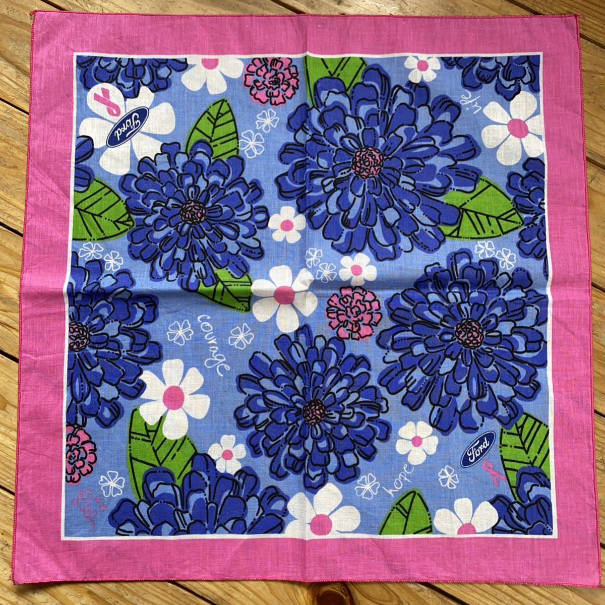 - 送料無料 Vintage バンダナ Ford フォード 花柄 紫紫陽花 メッセージ 水色 ピンク アメリカ仕入れ 雑貨 ハンカチ ヴィンテージ A0528