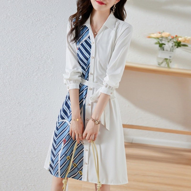 - CZN88☆秋新作 エレガント シャツワンピース オシャレ フォーマル 園行事 通勤大人 着やせ 長袖 ひざ下丈ワンピースドレス