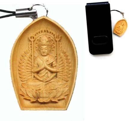 - 精緻な柘植彫刻・お守りご本尊様ストラップ 【子年:千手観音】