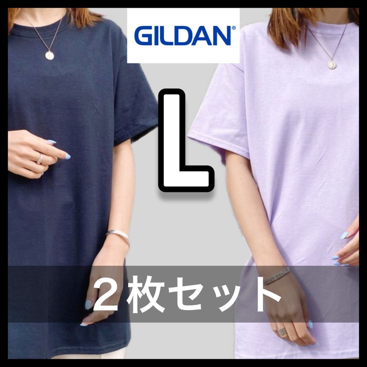 - 新品未使用 ギルダン 6oz ウルトラコットン 無地半袖Tシャツ ブラック オーキッド 2枚セット Lサイズ ユニセックス GILDAN