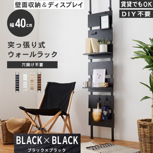 - 送料無料 突っ張りウォールラック KTR-3146 横幅40cm 壁面収納 穴あけ不要 賃貸住宅OK DIY不要 ブラック-ブラック BK-BK