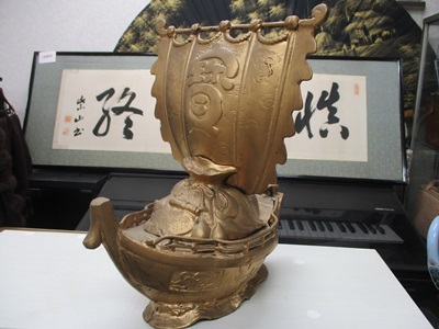 - ★鉄製 置物 香炉? 宝船 重たいです ※色が塗られています!剥げやサビ等あり状態悪い 高さ31.5㎝ 横28㎝ tm2307-25-2★
