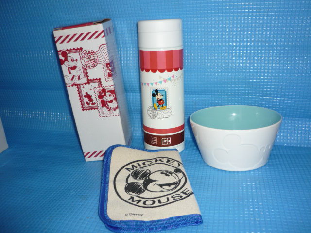- b★未使用・非売品★JCB×ミッキーマウス ステンレススチール製ボトル水筒とボウルとマルチケース