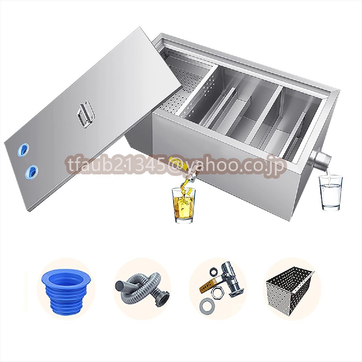 - 業務用グリースインターセプター、油水分離器 キッチン、多重フィルター、取り外し可能なバッフル付き 廃油水分離器