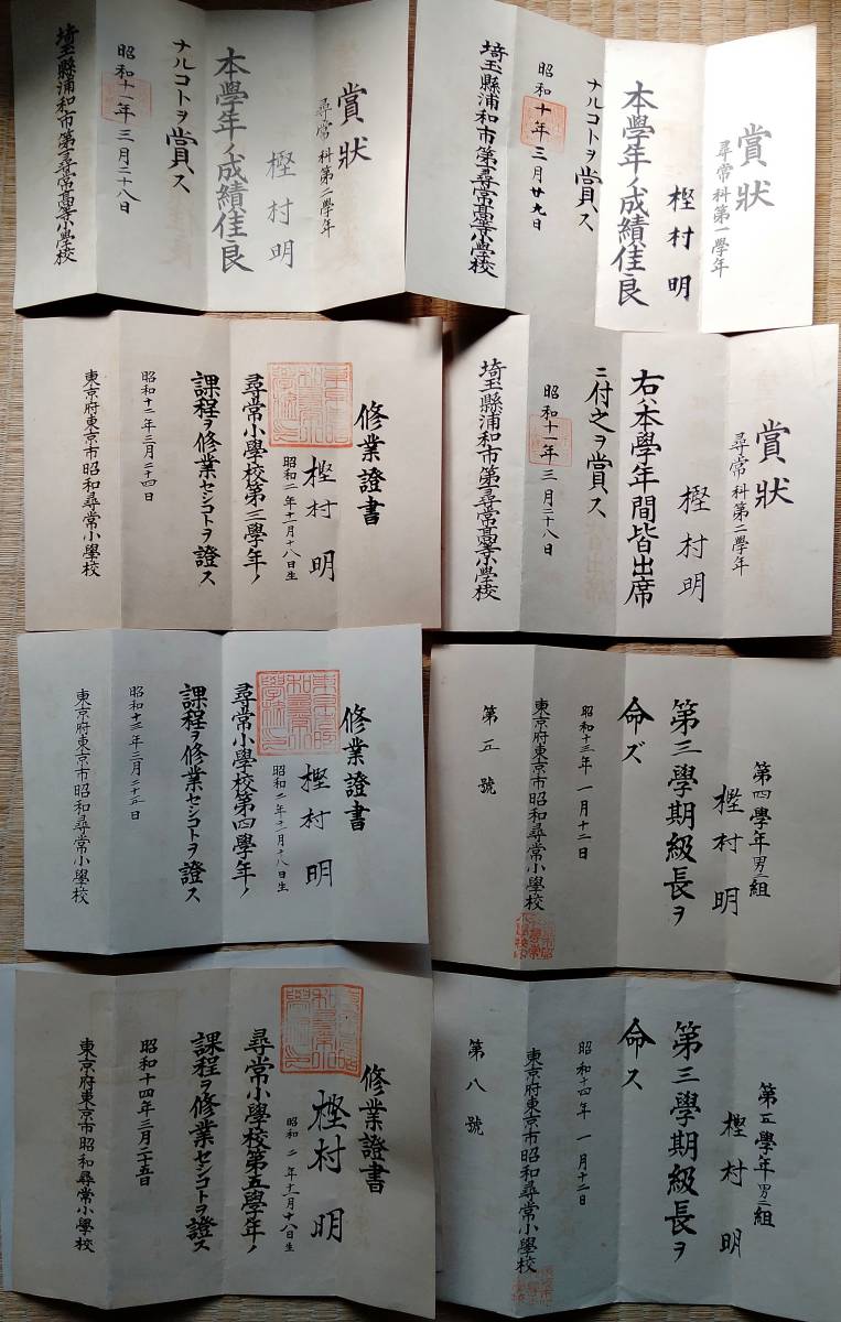 - f23080425〇昭和に生きた 東京大学学生 その1 小学校卒業証書 中学校成績表 全甲 オール5〇和本古書古文書