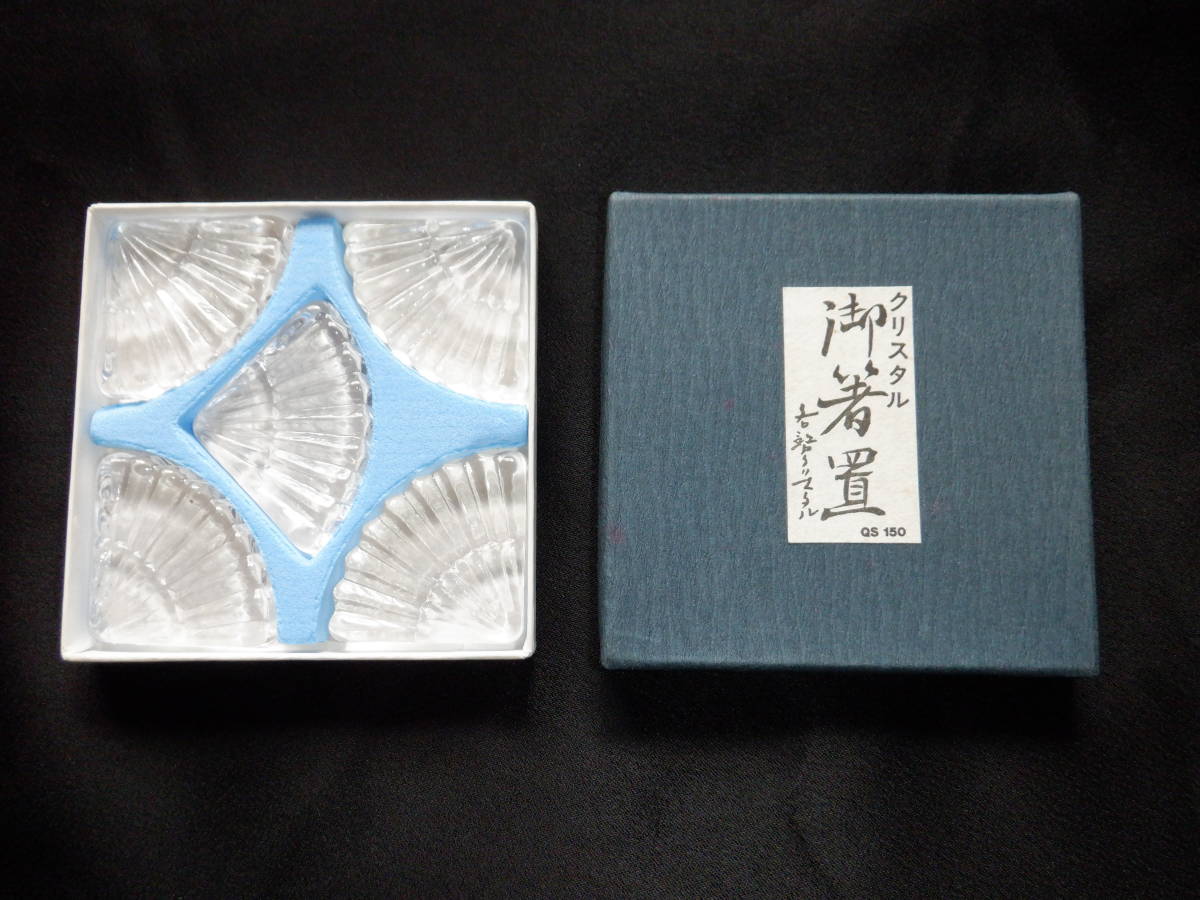 - カガミクリスタル 各務クリスタル 箸置 扇の形 5個セット 未使用品 箱入り