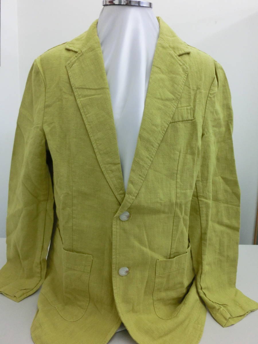 - ☆USED★テーラーカラーシングルジャケット★綿&麻★からし色(イエロー系)◆XL