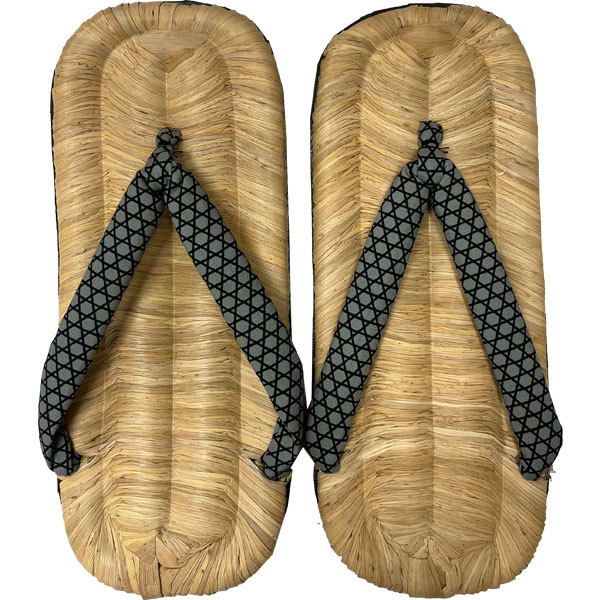 - 手編み手縫い竹皮草履 献健履き かごめ 坪下がりプリント鼻緒 並大 七寸七分 長さ約23.5cm/幅約9.3cm