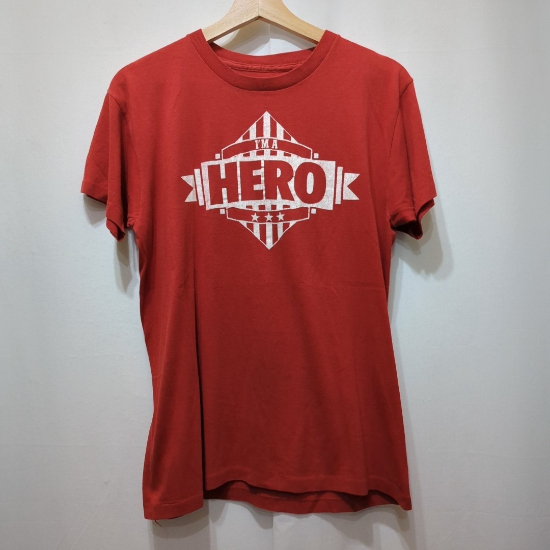 > ヴィンテージ I'm a HERO プリントTシャツ メンズ L相当 半袖 ビンテージ Vintage 赤 バクプリ バックプリント