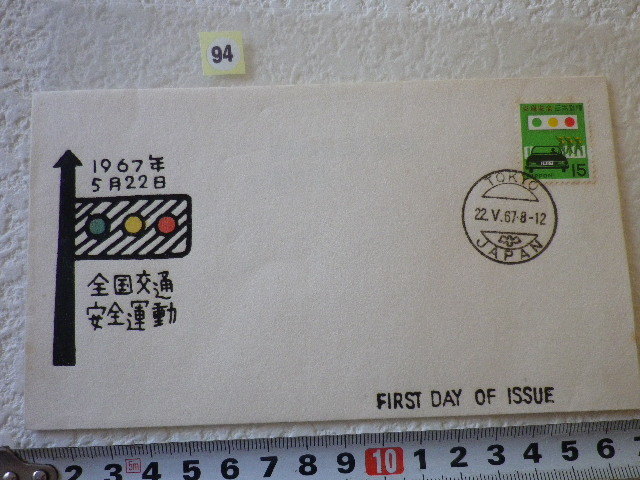 - FDC 15円交通安全 1貼1消 欧文ハト印 1967年 広セ栄一版●94