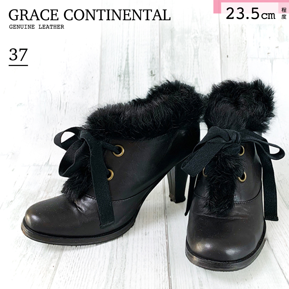 > GRACE CONTINENTAL 本革 レザー ブーティ 黒 ブラック ハイ ヒール ブーツ ショート 革靴 レースアップ グレースコンチネンタル 23.5cm 37
