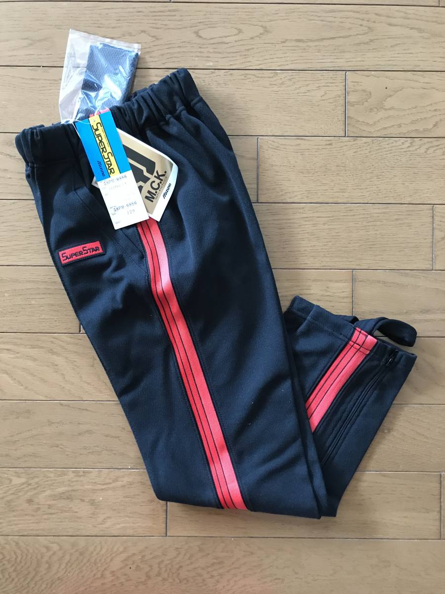 > 当時物 未使用 デッドストック Mizuno SUPER STAR ジャージ下 品番:58PM-0886 色:ブラック×レッド サイズ:120 TM8934