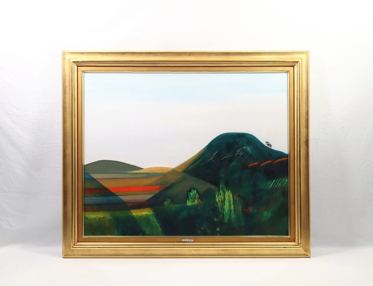 - 真作 松田節子 1989年 大作!油彩「unknown」画寸 91cm×72.5cm F30 兵庫県宝塚市住 独特の色使い、筆致の世界観で描く風景画作品 7826