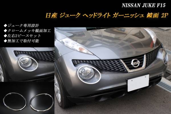 - ジューク F15 ヘッドライトガーニッシュ 2P 鏡面