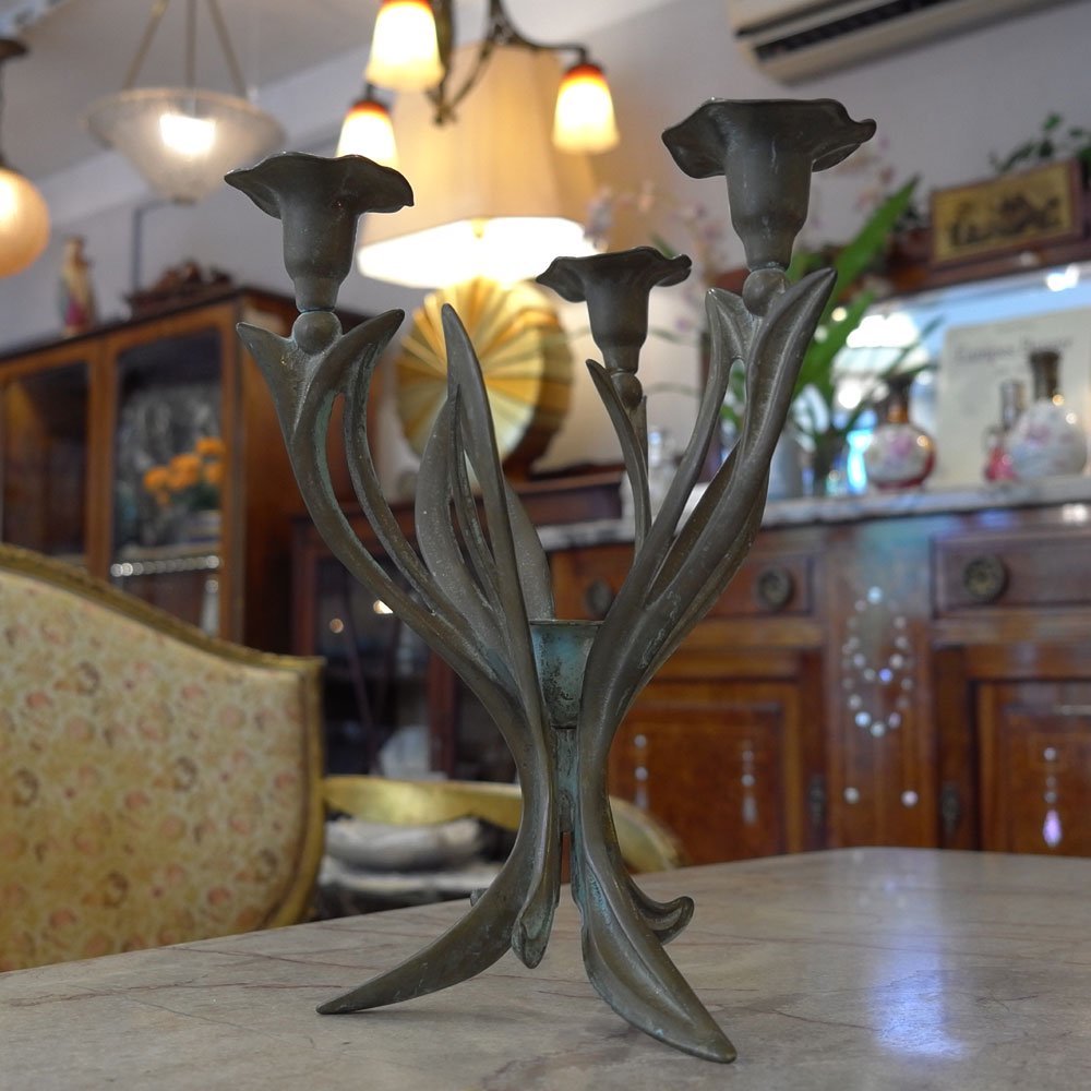 - 【建築家エクトール・ギマールの作品を見ている様 燭台】西洋ローソクキャンドルスタンド 青銅 花緑 インテリアフランスアールヌーボー置物