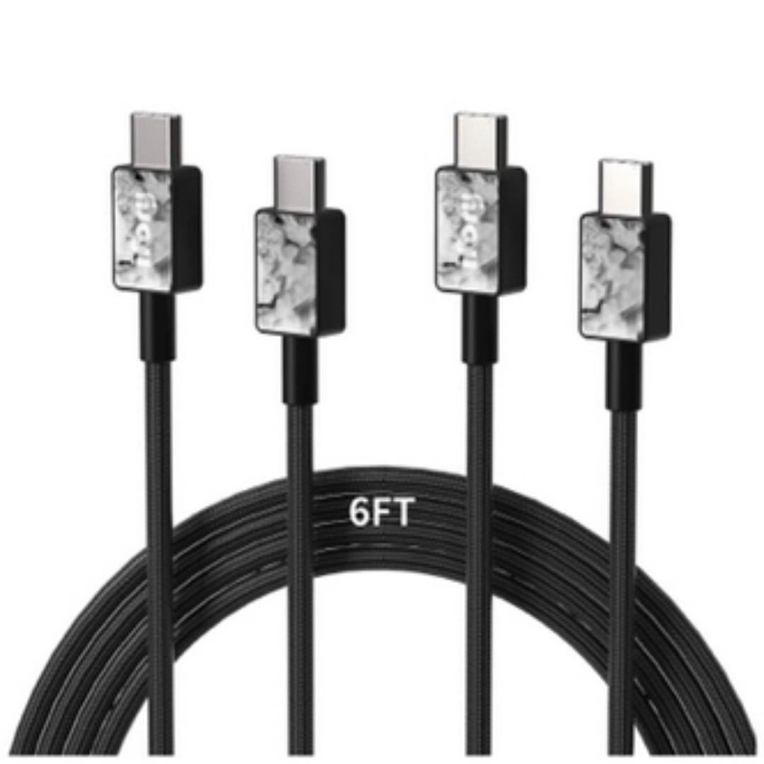 > USB C-USB C 20V 3A高速充電ケーブル USB Cケーブル充電器ナイロン編組、0.9m*2 1.8m*2 共4本セット 黒