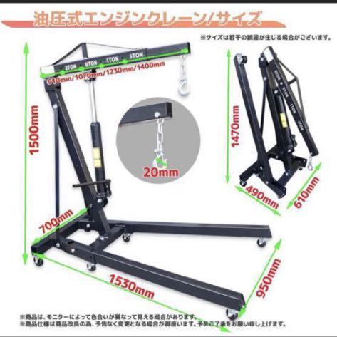 - エンジンクレーン2t 手動油圧 折畳み アーム4段階調節 吊り上げ 赤 黒2色