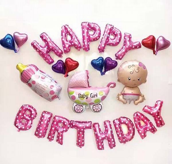 - 「agn-a2」 誕生日お祝い風船/ハッピーバースデー飾り バルーンセット(女の子用)