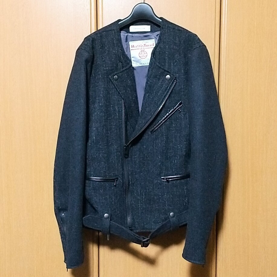 - Harris Tweed Com2ons Code ハリスツイード コモンスコード ウール ダブルライダースジャケット グレー サイズ3 日本製 レザー