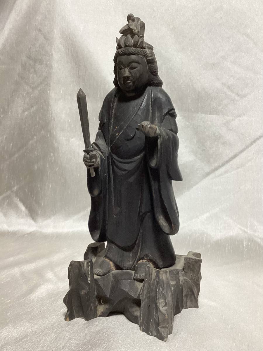 - 【終活委託出品】江戸期 木彫仏像 虚空蔵菩薩? 高さ30㎝ 仏教