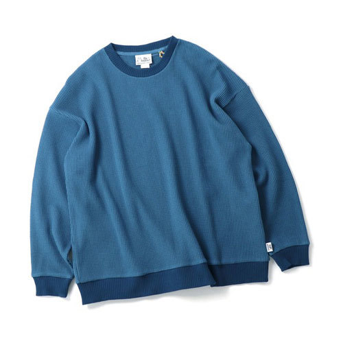 > GYM MASTER ジムマスター G733633 ワッフルクルーネック スレイトブルーxネイビー Mサイズ 新品