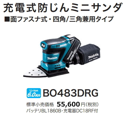 - マキタ 充電式 防じんミニサンダ BO483DRG 18V 6.0Ah 新品