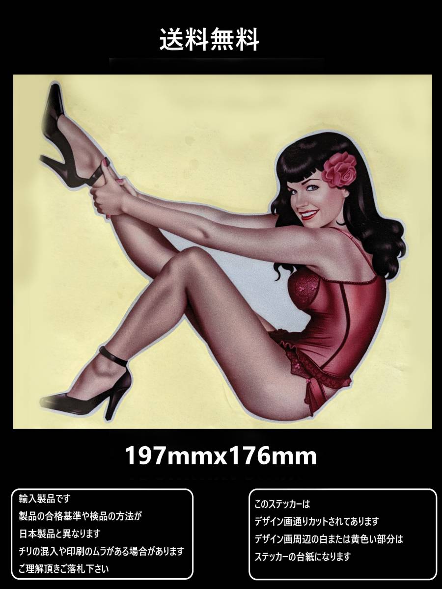> 【BIGキラキラ♪197㎜x176㎜ピンナップガール 薔薇】アート ★セクシーガール★セクシーステッカー★レトロステッカー