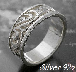 - シルバー925銀のアラベスク フロワ リング 白仕上げ/11号.19号より