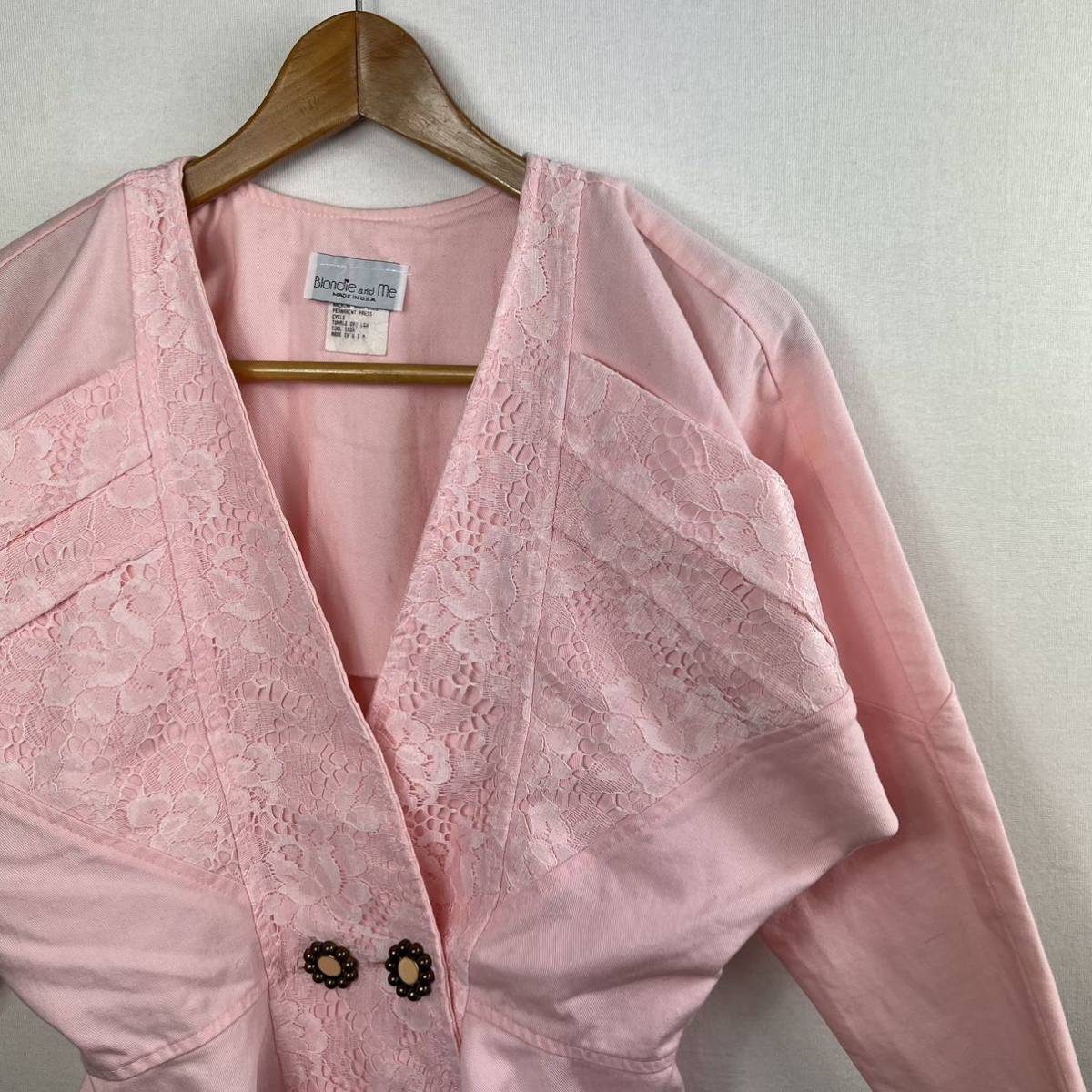 - ビンテージ 80s【Blondie and me】USA製 レトロ ドルマンスリーブ 花柄 レース ジャケット 90s ダブル 古着 ピンク 変形 Y2K 00s 衣装 短丈