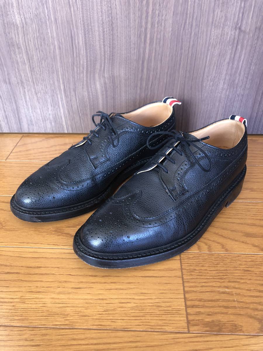 - THOM BROWNE シューズ 9.5 ブラック ペブルグレイン クラシック ロングウィングチップ ブローグ レザーソール 定番 トムブラウン 革靴