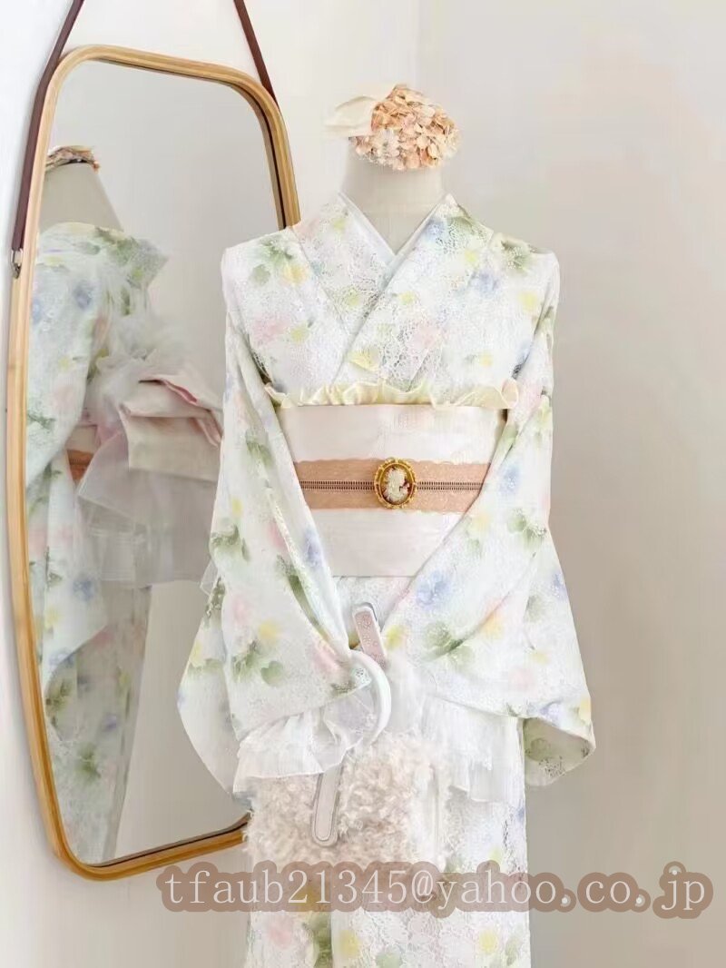 - 【ケーリーフショップ】レースの小紋着物 成人式 163CM 成人式 総レース 仕立て上がり単品