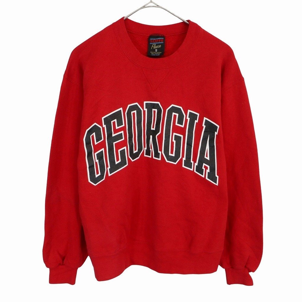 > 90年代 USA製 SOFFE 裏起毛 GEORGIA プリントスウェット トレーナー 前V レッド (メンズ S) 中古 古着 O3690