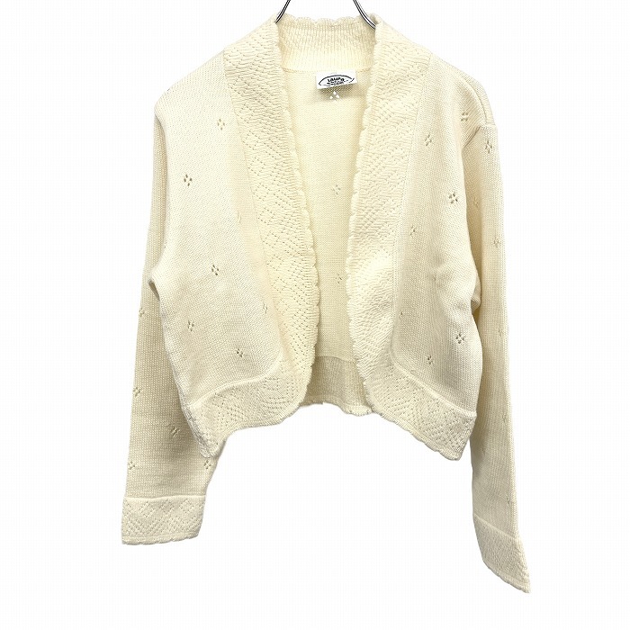 - ローラアシュレイ LAURA ASHLEY ショート丈 パンチングニット ボレロ ガウンカーディガン スカラップ 毛100% アイボリー レディース
