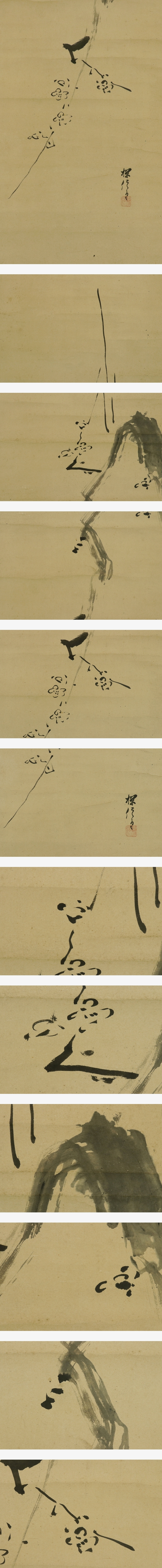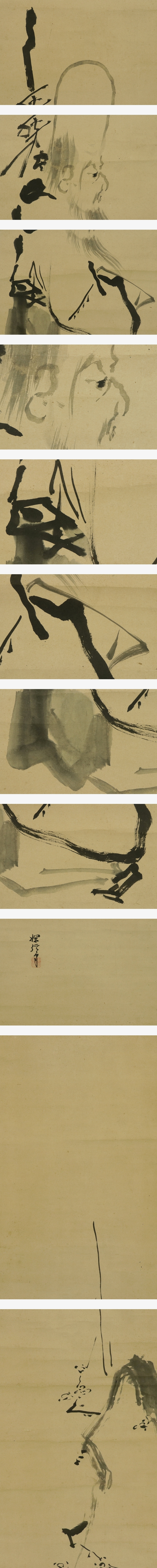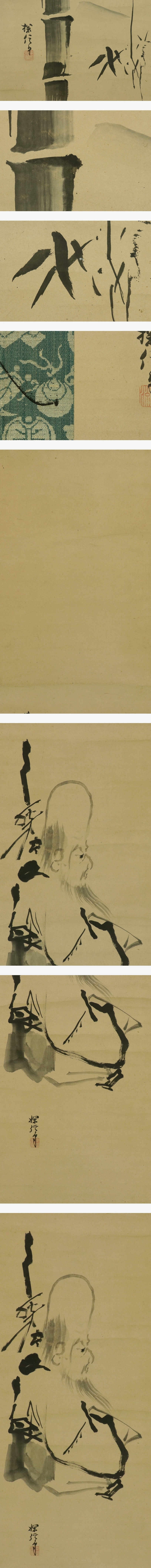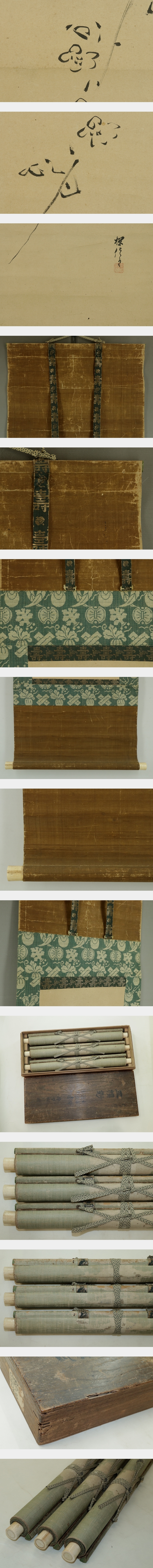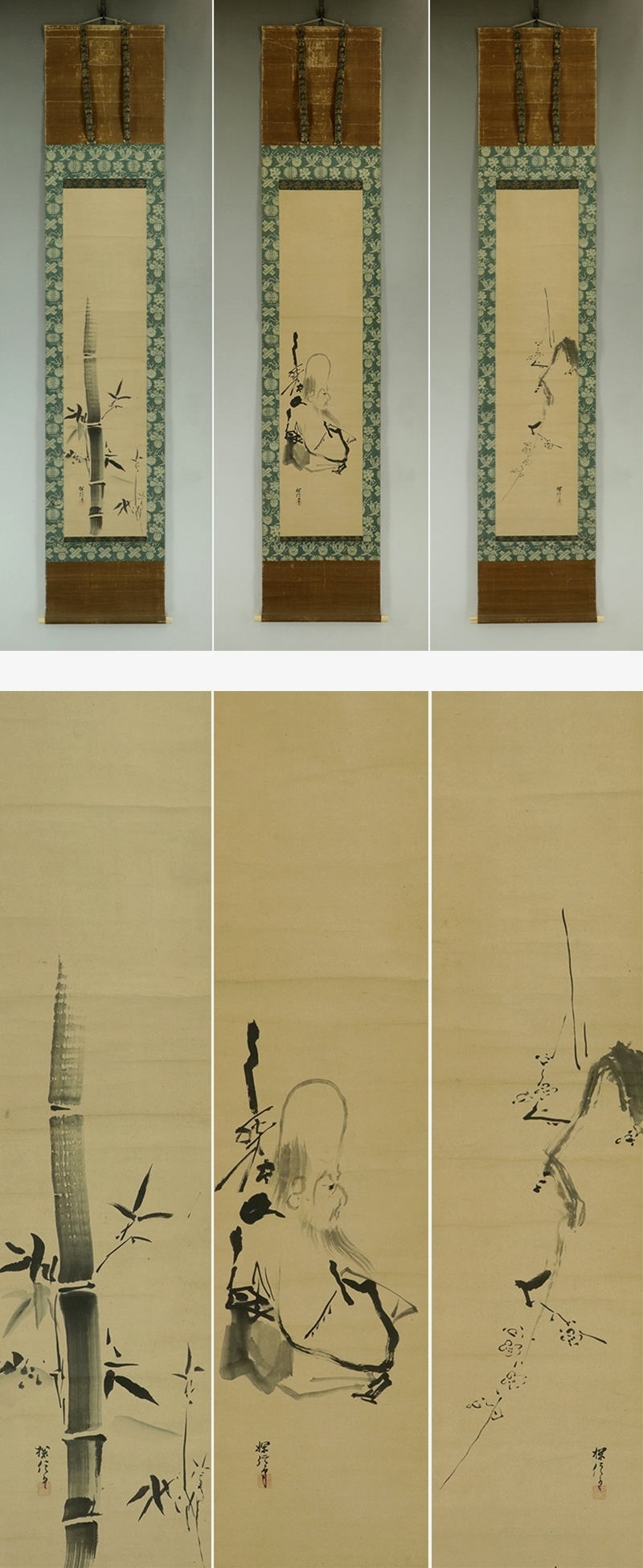 - 【真作】狩野探信【三対幅・慶祝図】◆紙本◆合箱◆掛軸 u10009