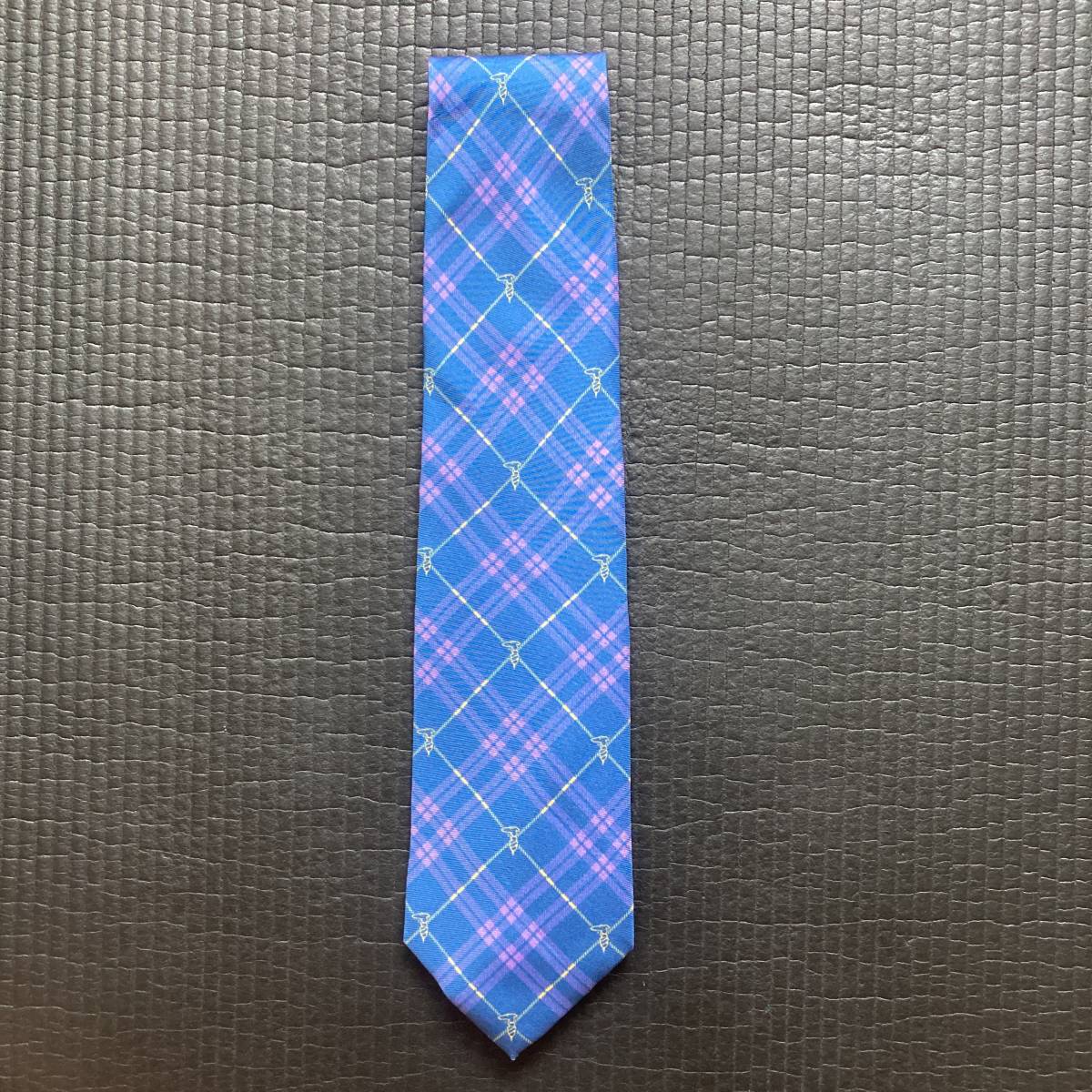 - ファッション小物 ☆ 廃番古着 ネクタイ TRUSSARDI トラサルディ ブルー系 チェック柄 イエローロゴ