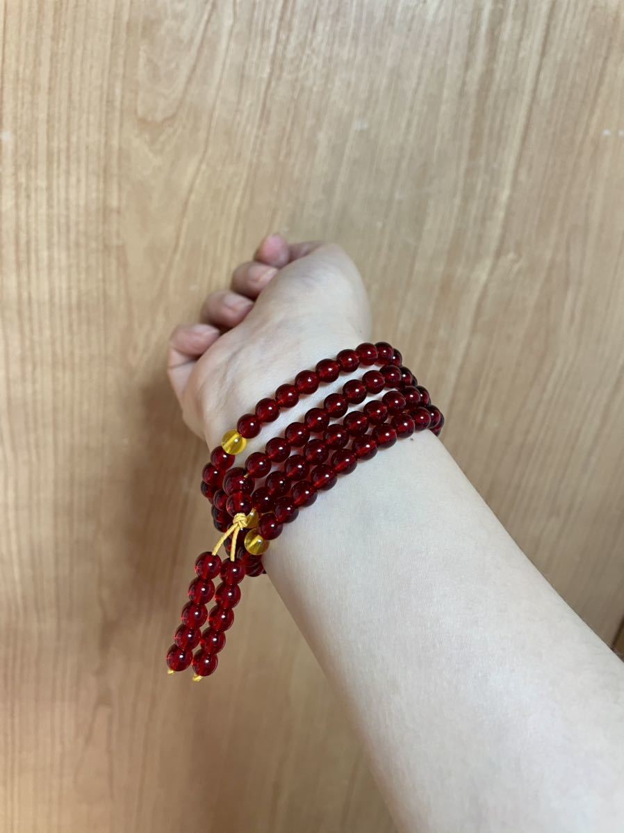 - 数珠 念珠 ブレスレット アンバー 蜜蝋 合成琥珀 108 小物グッズ レッド 赤 7mm 新品 アクセサリー 男女兼用 ネックレス 幸運 ラッキー