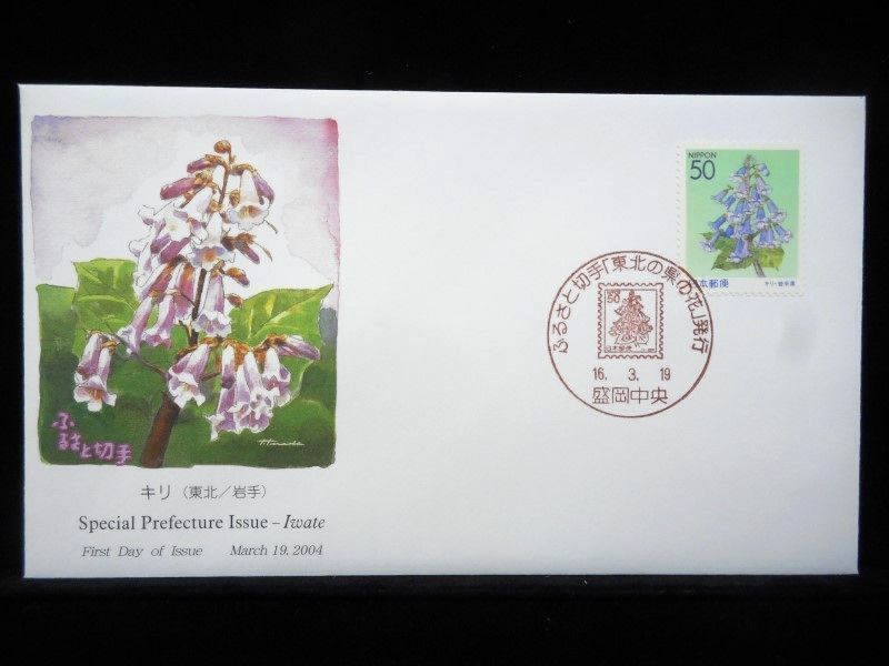 - ふるさと切手 東北の県の花 キリ 岩手県 平成16年 2004年 初日カバー FDC 日本切手 L-504