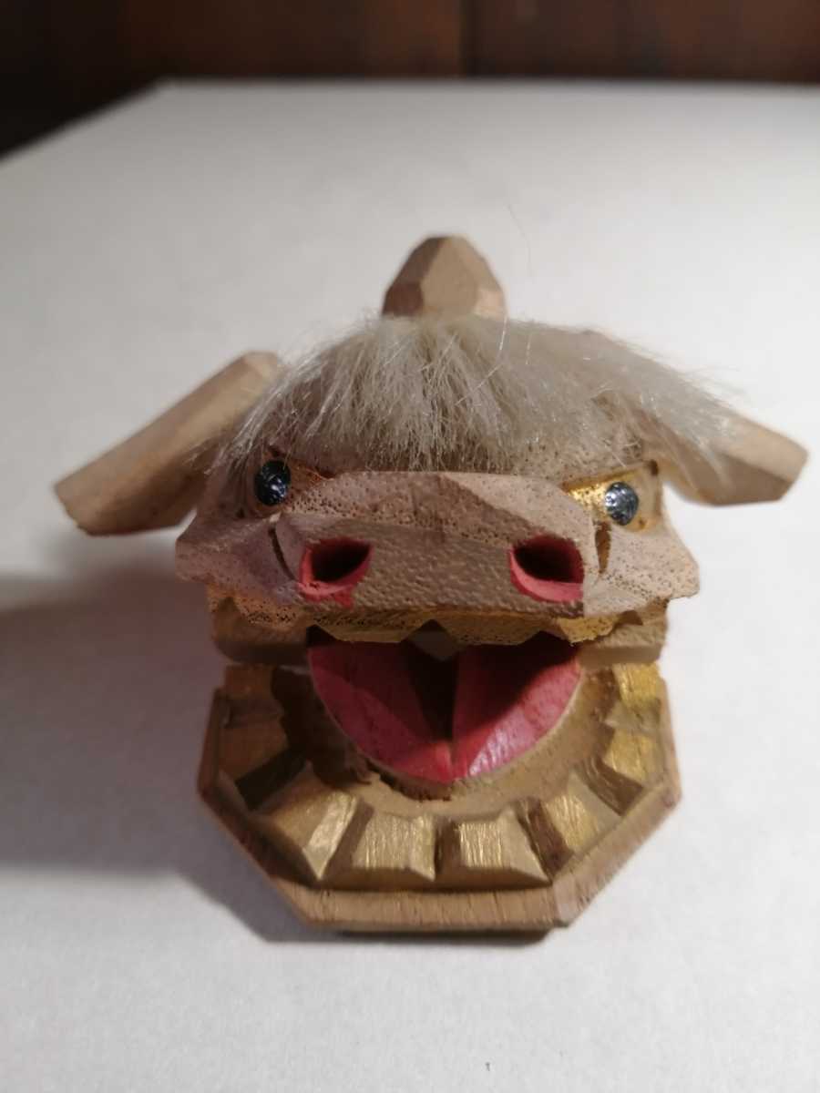 - 飛騨一刀彫 獅子頭 大正 郷土玩具 時代木工 木彫 工芸 正月 獅子舞 25M64r1